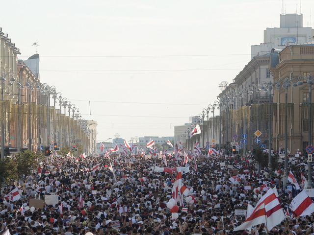 (ANSA-AFP) - MINSK, 17 AGO - Tens of thousands of Belarusian opposition supporters gathered for the largest protest rally in recent history in Minsk as President Alexander Lukashenko rejected calls to step down in a defiant speech. Crowds of protesters marched through the streets to the central Independence Square on Sunday, with an AFP journalist estimating the turnout at more than 100,0000, a scale of protest not seen since the breakup of the Soviet Union. Belarusian independent news site Tut.by called the rally "the largest in the history of independent Belarus". Columns of demonstrators raised victory signs and held flowers and balloons as a sea of protesters gathered in Independence Square, the focus of peaceful demonstrations in recent days. "Now we're changing history," said 26-year-old Yekaterina Gorbina, a content manager. "Blood was spilled and the people will never forget that." Darya Kukhta, 39, a mother of six, told AFP: "We believe that a new Belarus is beginning. I'm very happy to be seeing this with my own eyes." Demonstrators held placards with slogans such as "You can't wash off the blood" and "Lukashenko must answer for the torture and dead". Popular opposition candidate Svetlana Tikhanovskaya had called for a weekend of protests after leaving for neighbouring Lithuania following the disputed election, which gave Lukashenko 80 percent of the vote. Other major towns and cities in the ex-Soviet country of nine million also saw large rallies, local media reported. More and more Belarusians have taken to the streets over the last week to condemn Lukashenko's disputed victory and a subsequent violent crackdown by riot police and abuse of detainees. Unusually, tightly controlled state television news aired a short item on the "alternative protest" in Minsk, while not showing anti-Lukashenko slogans. Outside Belarus, hundreds of Czechs and Belarusians, some holding the traditional red and white Belarusian flag and portraits of Tikhanovskaya, gathered in Prague's historic centre Sunday in support of the protests. There were also smaller shows of support in Romania and Poland, AFP journalists said. Lukashenko, who has ruled Belarus for 26 years, is facing an unprecedented challenge to his leadership. The 65-year-old strongman held a rare campaign-style rally on Independence Square before the opposition protest. (ANSA-AFP).